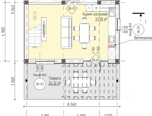 Первый этаж -кухня, столовая, гостиная, холл, сан. узел. В кухне, столовой и сан. узле плитка и теплый пол, в комнатах ламинат, везде натяжные потолки.