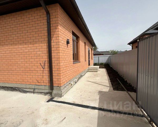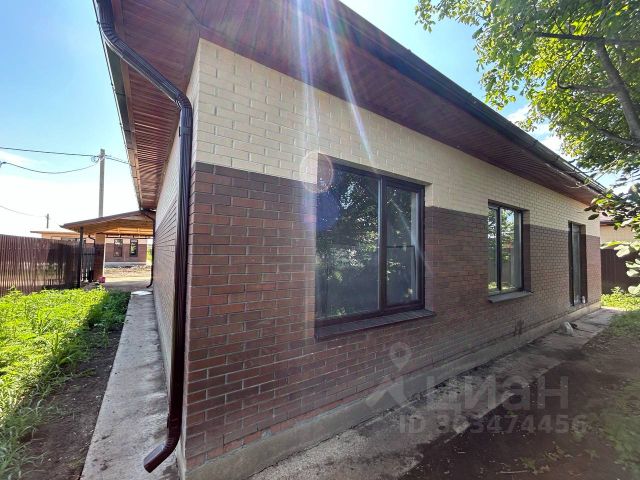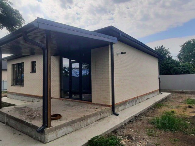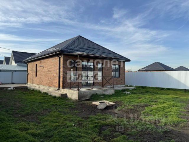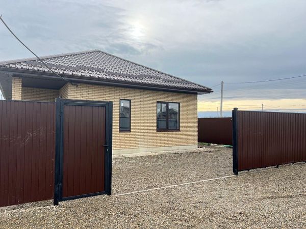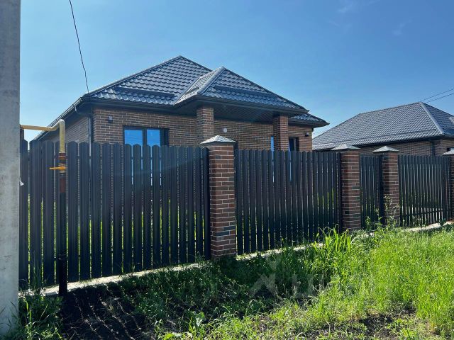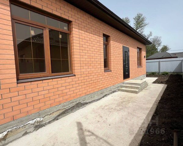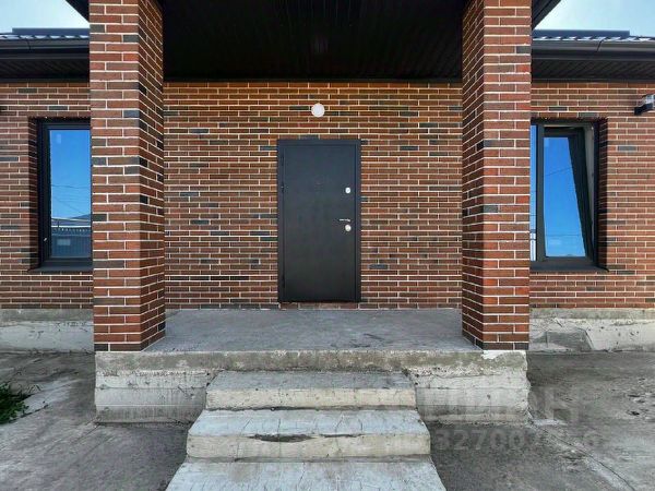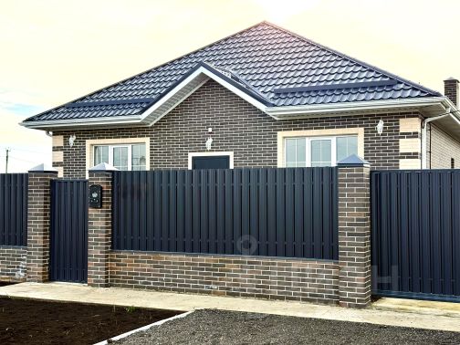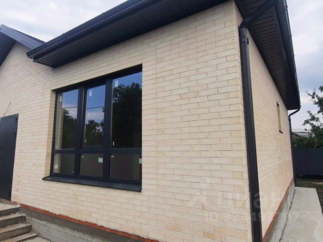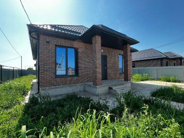 Дом возведен полностью из кирпича, высокий цоколь, металлопастиковые окна, кровля — металлочерепица, большая застекленная лоджия-веранда.
