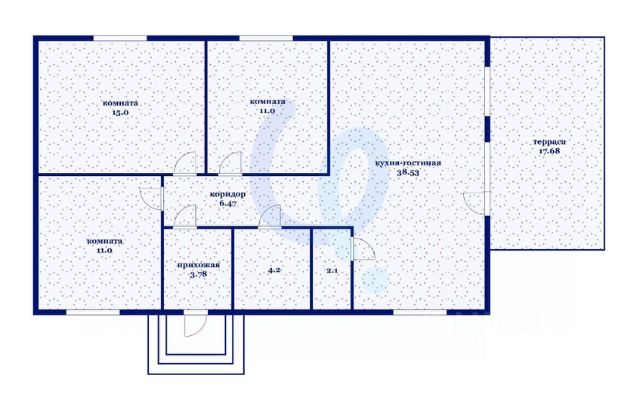 Планировка: Прихожая просторная (12,8 м2), кухня-гостинная 27,3 м2, кабинет или спальня 13,3 м2, спальные комнаты 14,4 и 14,9 м2, санузел 6 м2, установлена джакузи с лимфо-гидромассажем.