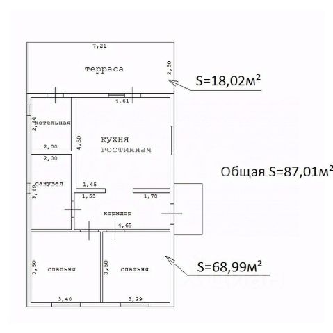 Кухня, объединенная с гостиной, с выходом на террасу.