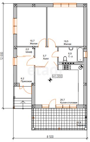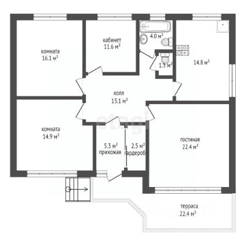 - Просторная кухня-гостиная (26 кв.м.) с выходом на террасу