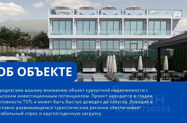 Продается уникальный круглогодичный гостиничный комплекс в живописном микрорайоне "Голубая бухта", всего в нескольких шагах от моря! Это отличная инвестиционная возможность с высоким годовым доходом и быстрой окупаемостью. Общая площадь здания составляет 2360 кв. м, расположенного на охраняемой территории площадью 0,1 га. Комплекс включает 35 комфортабельных номеров, способных разместить от 120 до 150 гостей. Каждый номер просторный и оснащен всем необходимым для комфортного проживания: рабочая зона, кондиционер, телевизор, холодильник, микроволновая печь, фен, мини-бар, чайная зона и быстрый интернет. Для удобства постояльцев организовано полноценное питание: уютная столовая на 36 мест, кухня и бар, а также летняя терраса на 33 посадочных места. Особое внимание уделено зонам отдыха и релаксации. Гостям доступны спа-процедуры с потрясающими видами, а также сауна с бассейном и два открытых бассейна с подогревом. Все помещения соответствуют строгим нормам СанПиНа и требованиям СЭС, что гарантирует высокий уровень сервиса и безопасности. На первом этаже расположены технические помещения, включая насосные станции, газовые котлы и систему водоподготовки. Для удобства персонала предусмотрены прачечная и жилой блок. Комплекс полностью обеспечен центральными коммуникациями: водопроводом, канализацией, отоплением, газом и электричеством с выделением дополнительных мощностей. Здание оборудовано современными системами вентиляции, охранной и пожарной сигнализации, а также видеонаблюдением. Земельный участок оформлен в соответствии с нормами застройки, и на него оформлено право собственности. Гостиница прошла сертификацию и не имеет обременений. Не упустите шанс стать владельцем этого прибыльного бизнеса в одном из самых привлекательных уголков побережья! Звоните и записывайтесь на просмотр!. Дополнительно оплачивается комиссия с покупателя. Код пользователя: 45944 Номер в базе: 436751