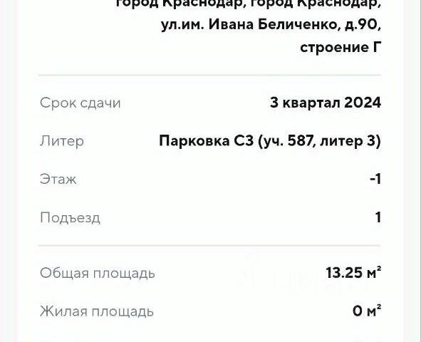 Продам подземное парковочное место 98, по адресу: Краснодар, ул. им Ивана Беличенко, д.90, строение Г. Закрытая парковка на -1 этаже, попасть можно по электронному ключу или мобильному приложению. А также выход на подземный паркинг из дома по адресу Ивана Беличенко 90к2. Покупка перспектива как для себя, так и для инвестиции. Обеспечьте безопасность своего автомобиля.
