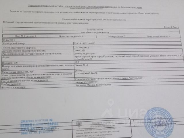 Продаю своё машиноместо в подземном паркинге по адресу: Краснодар, ул. им. Ивана Беличенко, д. 90, строение Б. ( относится к литере 54). Площадь машиноместа составляет 13,30 м². Машиноместо расположено в новом жилом комплексе "Самолёт 6" от застройщика "Догма", литер 54. Удобное расположение в подземном паркинге обеспечивает защиту вашего автомобиля от погодных условий и безопасность. Пишите в любое время, на звонки могу не ответить. Торг чуть уместен только реальному покупателю.