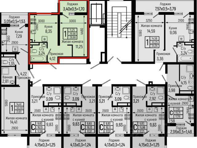 Апартаменты 17,5 кв.м расположены на втором этаже из четырех.
