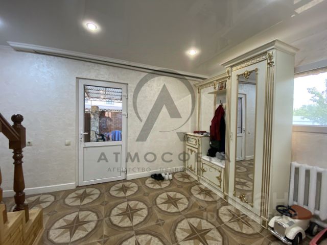 В доме удобно расположились комнаты: спальня, большая гостиная, проходная комната, уютная кухня, застеклённая лоджия, прихожая, лестница на цокольный этаж и выход на мансардный этаж. Везде постелен ламинат, натяжные потолки, стены - штукатурка под короед.