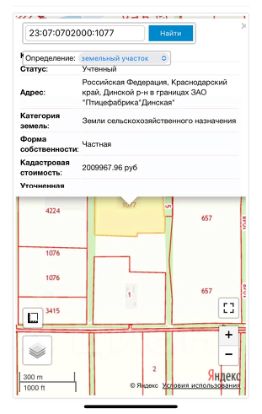 Кадастровый номер: 23:07:1002001:30 Категория земель: Земли сельскоxозяйcтвенногo назначeния для ведения крестьянского хозяйства Уточненнная площадь: 21 693 кв...