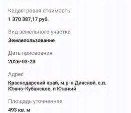 Д-к: Куштанок А.С. Земельный участок (для индивидуального жилищного строительства) площадь 800 кв.м., кадастровый номер 23:43:0109016:1454. Почтовый адрес ориентира: Краснодарский край, г. Краснодар, Калининский сельский округ,...
