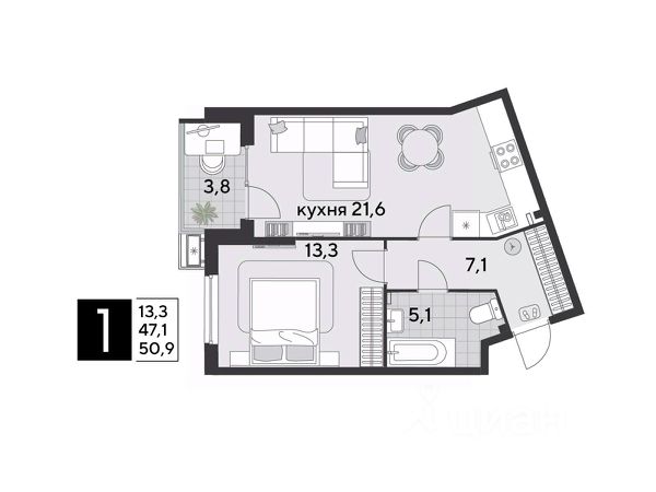 Арт. 126751345 Продается квартира с ремонтом, мебелью и техникой.