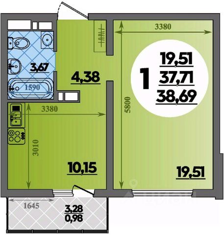 Продаётся 1-комнатная квартира в строящемся доме (Литер 3), срок сдачи: II-кв. 2027, общей площадью 38.75 кв.м., на 6 этаже.