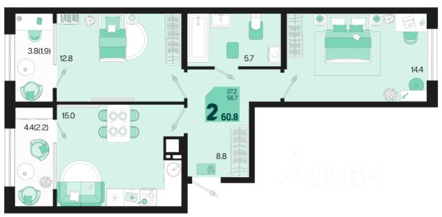 • ✓ В базе Циан 9 тыс. квартир 60 м2 в Краснодарском крае