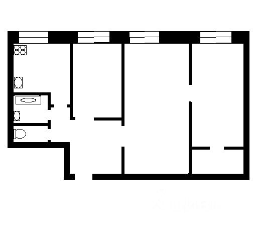 Общая площадь 57 кв.м. В квартире три комнаты, прихожая, кухня, ванная комната.
