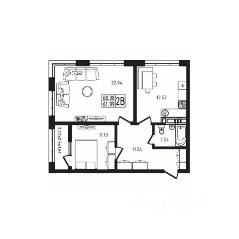 Продаётся 2-комнатная квартира в сданном доме (Олега Цокова, 4 (Литер 6)), срок сдачи: IV-кв. 2024, общей площадью 65.66 кв.м., на 6 этаже.