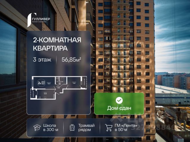 2-к квартира в ЖК "Гулливер" Напрямую от застройщика. Комфортное жилье для жизни — больше пространства, выгодные условия и удобный район. Локация — ключевое преимущество: — Удобный выезд на основные магистрали; — До центра города около 15 минут; — Удобное расположение рядом с трамвайной линией; — Быстрый доступ в любые районы; Живете в удобной точке города без лишних затрат времени. Развитая инфраструктура: Детские сады и школы рядом; Магазины, ГМ "Лента" 50 м; Медицинские учреждения; Зоны для прогулок и отдыха; Всё необходимое — в шаговой доступности. О застройщике:ЕкатеринодарИнвест-Строй — надежный девелопер Краснодара Работаем с 2013 года; 14 успешно реализованных проектов; Более 17 000 семей приобрели жилье; 900+ объектов введено в эксплуатацию. Финансовая выгода: Ипотека от 3,5%; Ежемесячный платеж от 26 942 ₽; Стоимость от 99 000 ₽/м²; Ограниченное количество квартир по акции. Отличный вариант для покупки: Для семьи — комфортная 2-комнатная планировка с возможностью зонирования и личного пространства для каждого; Для улучшения жилищных условий — больше площади, удобство и высокий уровень комфорта по сравнению с однокомнатной; Для инвестиций — ликвидный формат, который стабильно пользуется спросом на рынке; Выгодная цена на текущем этапе — есть возможность зайти по более низкой стоимости; Перспектива роста стоимости за счет развития района и инфраструктуры; Универсальный вариант — легко сдаётся в аренду и быстро продается при необходимости; Отличный баланс цены, площади и расположения — оптимальное решение без переплаты; О квартире: Удобная 2-комнатная планировка; Изолированные комнаты; Просторная кухня с возможностью объединения; Большие окна — больше света и пространства Продуманная зона хранения; Рациональное использование каждого метра. Площадь: 55.35 м² Этаж: 5 Вид из окон: на "Ленту" Почему именно ЖК "Гулливер": Закрытая территория — безопасность и спокойствие для вас и вашей семьи; Двор без машин — тишина, комфорт и безопасное пространство для детей; Подземный паркинг — удобство и защита автомобиля в любое время года; Детские и спортивные площадки — всё для активной жизни прямо у дома; Коммерция на первых этажах — магазины, сервисы и всё необходимое в шаговой доступности. Напишите нам — подберем подходящие планировки, оптимальную площадь и направим актуальные цены. Точные расчеты производятся на примере конкретных квартир и зависят от банковских программ. Информацию о ценах и наличии уточняйте у нашего отдела продаж. *Рендеры носят иллюстративный характер и демонстрируют возможный вариант оформления квартиры, не являясь ремонтом от застройщика.