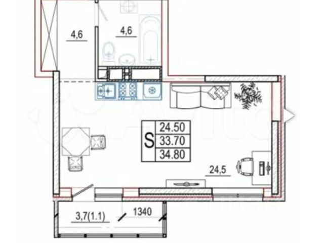 Все комнаты изолированные: кухня, гостиная, 2 спальни, 2 санузла.