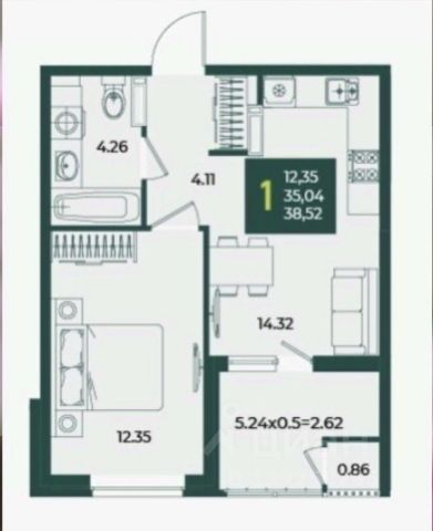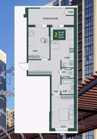 Удобная планировка на 2 стороны: 2 спальни, просторная кухня-гостиная.