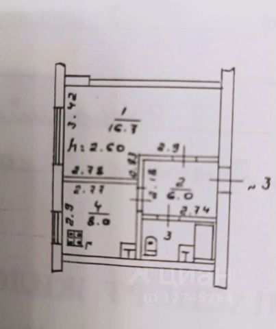 Комнаты имеют площадь 12,4 кв. м, 7,4 кв. м и 7,6 кв. м.