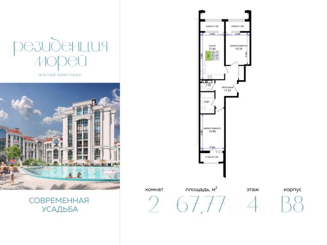 Видовые квартиры с окнами на три стороны света и семейные форматы с тремя спальнями, двумя ванными и отдельной кухней;