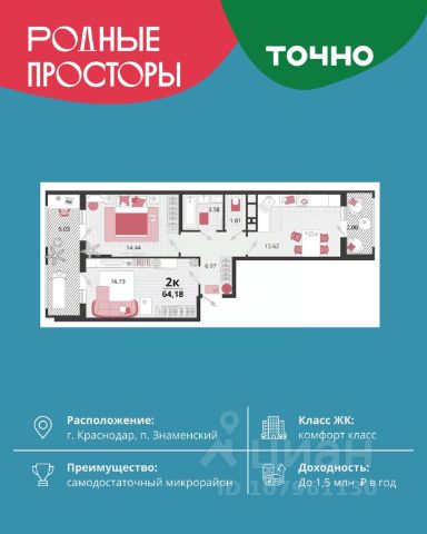 В жилом квартале "Достояние" можно купить квартиры, которые подойдут студентам, парам или большим семьям. Площадь жилых пространств варьируется от компактных студий до 3-комнатных квартир. В каждой из них предусмотрена чистовая отделка, а