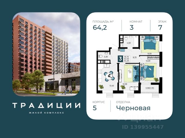 Литер 5, 15 этаж, 152. ЖК "Традиции" - это новый современный комплекс на 7 гa, в 10 минутах от Краснодара. Баланс города и природы. Вся необходимая инфраструктура в пешей доступности Инфраструктура комплекса: Продуманная среда для жизни Всё для детей всех возрастов Современные детские площадки Действующая новая школа на 1100 мест в 70 метрах Свой двор-парк и сквер Падел-теннис и корт во дворе Двор без машин Современная архитектура Безбарьерная среда Воркаут-зона Система видеонаблюдения для безопасности Просторные и лаконичные холлы Многоуровневый паркинг Спортивные площадки для любых видов тренировок Универсальные спортивные площадки для любых видов тренировок Зона для настольных игр Волейбольная площадка и баскетбольная площадка Уютные зоны отдыха для жителей Колясочные и места для хранения велосипедов Трёхуровневое озеленение Позвоните сейчас и забронируйте квартиру со скидкой!