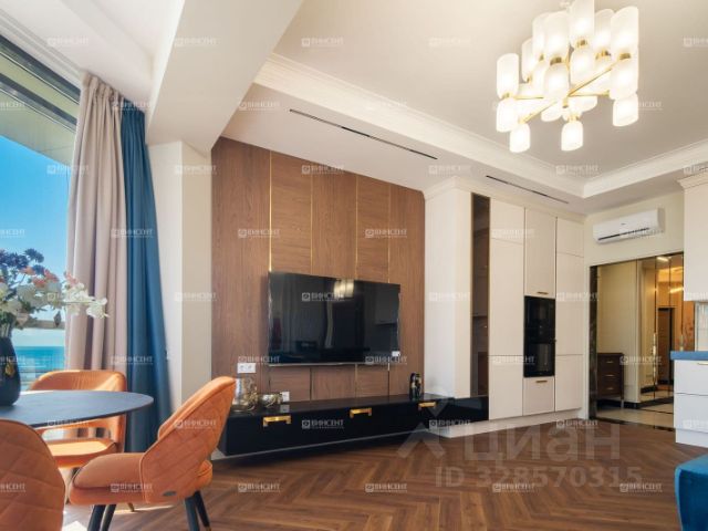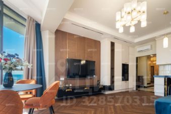 Комплекс апартаментов элитного класса представлен 8-этажным зданием, возведенным по монолитной технологии с вентилируемым фасадом из керамогранита. В доме установлены пассажирский и грузовой лифты, предусмотрены дизайнерские холлы. В проекте предлагаются апартаменты площадью от 56 до 380 кв. м с панорамными окнами и высотой потолков 3,15 м. Из окон открываются виды окружающий ландшафт. Отделка выполнена в чистовом варианте с применением премиальных материалов — кварцвинилового ламината, керамогранита, МДФ-панелей и декоративных покрытий. В ванных комнатах установлена сантехника высокого класса: душевая система, подвесной унитаз, раковины, смесители и полотенцесушители. Проект реализован в уникальной концепции, сочетающей жилой формат и инфраструктуру премиального отеля. Это единственный отель в Сочи с брендовыми ресторанами авторской и высокой кухни. Для резидентов создана единая экосистема с развитым сервисом и зонами отдыха. На территории находится крупнейший в городе открытый бассейн. Для владельцев авто оборудованы стоянки. Комплекс расположен в Адлере — престижной прибрежной зоне с развитой инфраструктурой и природным окружением. В 510 минутах пешком находятся кафе, рестораны, магазины, аптеки, фитнес-клубы, парки и пляж на побережье Черного моря. Вблизи протекает река Мзымта. Дорога до аэропорта Сочи занимает 10 минут транспортом, до федеральной территории Сириус — 15 минут, а до центра города можно добраться за 40 минут транспортом. Квартира с двумя санузлами в Краснодарском крае.