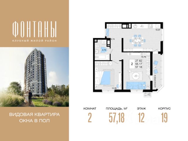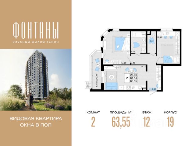 Двухкомнатная квартира в жилом комплексе "Фонтаны" спроектирована с учетом современных требований к комфорту и функциональности. Просторная кухня и две изолированные комнаты обеспечивают удобную и гибкую организацию пространства - вы можете использовать их как спальню и детскую, кабинет или гостевую. Особенность планировки - панорамное витражное остекление, которое наполняет интерьер естественным светом и визуально расширяет пространство. Уютную атмосферу дополняет светлая лоджия с витражным остеклением, которую можно обустроить как зону отдыха или полезное подсобное помещение. Продуманное расположение всех зон, высокие потолки и большие окна создают ощущение простора, света и уюта, делая эту квартиру в "Фонтанах" по-настоящему комфортным и современным домом.