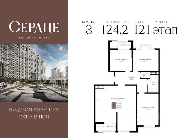 В одном из самых престижных районов Краснодара, всего в нескольких минутах от исторического и делового центра города, продается квартира площадью 136.90 кв. м, расположенная на 12 этаже 19-этажного дома 1 этап. Квартира находится в премиальном жилом комплексе "Сердце" от ГК "ССК". О проекте Представьте: весь Краснодар как на ладони открывается вам из ресторана и фитнес-клуба с бассейном, расположенных на головокружительной высоте 23-го этажа. Городские пейзажи разворачиваются перед вами из наружных панорамных лифтов, а сам город, кажется, восхищается величественным обликом вашего дома, носящего имя "Сердце". Эксклюзивный проект в элегантном стиле неоклассицизма, высочайший уровень дизайна и продуманные до мелочей планировки, способные удовлетворить потребности любой семьи - всё это в самом сердце города. Эстетика индивидуальности Жилой комплекс "Сердце" представляет собой идеальное сочетание современного жилья и премиум-комфорта, где каждая деталь продумана для истинных ценителей эстетики и индивидуальности. Архитектура впечатляет своим величием и элегантностью, а фасады, выполненные из высококачественных натуральных материалов, подчеркивают статус и изысканность его жителей. Особое внимание уделяется озеленению внутренней территории, где уникальный ландшафтный дизайн становится не просто декором, а источником ежедневного вдохновения для жителей. Территория разделена на три уровня растительности - ухоженные газоны и цветочные клумбы с уникальными сезонными композициями, декоративные кустарники редких сортов и величественные деревья, включая экзотические породы, которые формируют гармоничную экосистему. Безопасность жителей является приоритетом, где каждая деталь продумана для обеспечения максимальной защиты, комфорта и конфиденциальности. Закрытая территория комплекса гарантирует полную приватность, предоставляя доступ исключительно жителям и их гостям. Оазис в городе Воспользуйтесь эксклюзивной возможностью ежедневно наслаждаться великолепием Краснодара с высоты птичьего полета! На 23 этаже ЖК "Сердце" расположен изысканный ресторан и современный фитнес-клуб с бассейном, откуда открываются самые захватывающие виды на исторический центр города. Настоящим символом притяжения для жителей станет живописная терраса, которая раскинется вдоль улиц Школьная и Академика Пустовойта. Здесь расположатся элитные рестораны и стильные кофейни, где каждый найдет что-то по душе. Особенности проекта - Превосходная тепло- и шумоизоляция. - Мобильное приложение с возможностью удаленного управления. - Система "Умный дом". - Один из самых красивых стадионов Европы и прилегающий к нему великолепный парк "Краснодар" в 7 минутах на машине. - Развитая социальная и коммерческая инфраструктура в шаговой доступности. Успейте приобрести квартиру в премиальном жилом комплексе "Сердце" по самым выгодным условиям! Чтобы узнать подробности, обращайтесь по телефону или в офис продаж.