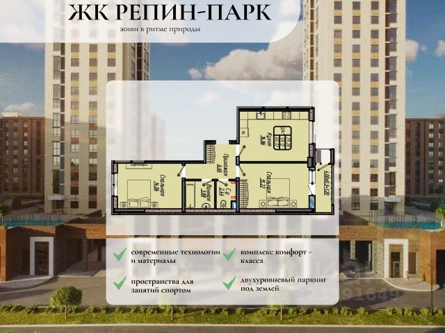 Уникальное предложение в жилом комплексе "Репин Парк"! Комплекс расположен всего в 10 минутах от центра Краснодара, в Фестивальном микрорайоне. Строгое соблюдение сроков и высокое качество строительства - главные преимущества "Репин Парк". Современные технологии и материалы обеспечивают надежность и экологичность зданий. Монолитный железобетон и трехслойные наружные стены обеспечивают прочность и сохраняют тепло. Переменная этажность комплекса от 9 до 18 этажей позволяет получить больше солнечного света для всех уровней квартир с внутренней стороны. Площадь придомовой территории будет оформлена зелеными насаждениями, создавая приватное пространство для отдыха, детских игр и семейного досуга. Во дворе также будут пространства для занятий спортом и воркаутом. Парковка будет предусмотрена на подземном уровне с двухуровневым паркингом для жителей и гостевыми машиноместами. Квартира сдается с уже завершенными черновыми работами, включая коммуникации, стяжку пола, разводку электросетей и теплоснабжения, остекление окон и балконов, установку радиаторов и входных дверей. В ЖК также предусмотрены индивидуальные кладовые помещения. Благодаря удобному расположению, жители "Репин Парк" могут наслаждаться пешей доступностью к крупным сетевым магазинам, фитнес-клубам, школам, детским садам, кафе, ресторанам и остановкам общественного транспорта. Удобная транспортная развязка обеспечивает простой доступ и избавляет от пробок. "Репин Парк" предлагает комфортное расположение, полный спектр социальных и инфраструктурных объектов, современные технологии и уютную атмосферу. Качество, комфорт и доступность - вот то, что делает "Репин Парк" особенным. Звоните нам прямо сейчас! Успейте купить свою счастливую квартиру!