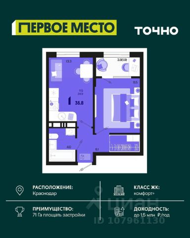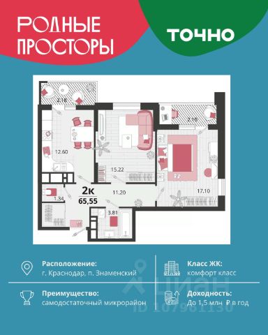 В продаже 1-комнатная квартира от застройщика! ЖК "Рекорд" 2 очередь, г. Краснодар, Литер 5 Срок сдачи: 4 кв. 2026, общей площадью 41.6 кв.м., на 14 этаже. Жилой Комплекс "РЕКОРД" - место вашего баланса. Город снаружи природа внутри. Квартал с максимумом возможностей для хорошо сбалансированной жизни. Расположен в оживленном благоустроенном районе города. Сочетает в себе и жилую застройку, и торгово-деловые центры. Здесь все под рукой, здесь центр городских событий. • Уникальная локация центр города • Современная архитектура • Панорамные виды • Двухуровневые квартиры с камином и террасой • Элегантные входные группы • Архитектурная подсветка фасадов • Школа во дворе (1550 мест) • Детский сад во дворе (110 мест) • Двор без машин • Подземный паркинг и гостевые парковки • Круглосуточный пост охраны • Медицинский центр • Фитнес центр • Система "умный дом" • Баскетбольная и универсальная спортивные площадки • Современные развивающие детские игровые площадки • Ресторанный дворик с аллеей и фонтаном • Храм с уникальной архитектурой • Премиальные лифты с подсветкой и музыкой • Звукоизоляционные окна • Зарядные устройства для электромобилей • Ароматизация мест общего пользования • Элегантные входные группы • Дизайнерские лобби • Консьерж сервис • Сквозные подъезды и доступ по Face ID • Кладовки • Кондиционирование холлов • Благоустройство территории с Арт объектом • Воркаут-зоны • Зона коворкинга • Wi-fi и USB розетки на всей территории двора Приобрести квартиру можно одним из способов: -субсидированная семейная ипотека 4,5 % на весь срок -рассрочка до конца строительства -оплата наличными -дистанционная покупка Позвоните сейчас и забронируйте квартиру со скидкой!