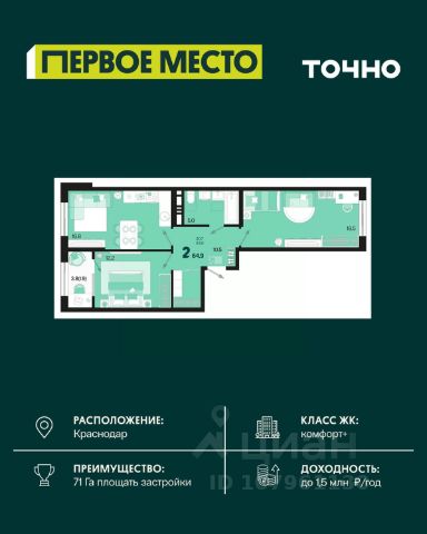 В продаже 2-комнатная квартира от застройщика! ЖК "Рекорд" 2 очередь, г. Краснодар, Литер 4 Срок сдачи: 4 кв. 2026, общей площадью 71 кв.м., на 14 этаже. Жилой Комплекс "РЕКОРД" - место вашего баланса. Город снаружи природа внутри. Квартал с максимумом возможностей для хорошо сбалансированной жизни. Расположен в оживленном благоустроенном районе города. Сочетает в себе и жилую застройку, и торгово-деловые центры. Здесь все под рукой, здесь центр городских событий. • Уникальная локация центр города • Современная архитектура • Панорамные виды • Двухуровневые квартиры с камином и террасой • Элегантные входные группы • Архитектурная подсветка фасадов • Школа во дворе (1550 мест) • Детский сад во дворе (110 мест) • Двор без машин • Подземный паркинг и гостевые парковки • Круглосуточный пост охраны • Медицинский центр • Фитнес центр • Система "умный дом" • Баскетбольная и универсальная спортивные площадки • Современные развивающие детские игровые площадки • Ресторанный дворик с аллеей и фонтаном • Храм с уникальной архитектурой • Премиальные лифты с подсветкой и музыкой • Звукоизоляционные окна • Зарядные устройства для электромобилей • Ароматизация мест общего пользования • Элегантные входные группы • Дизайнерские лобби • Консьерж сервис • Сквозные подъезды и доступ по Face ID • Кладовки • Кондиционирование холлов • Благоустройство территории с Арт объектом • Воркаут-зоны • Зона коворкинга • Wi-fi и USB розетки на всей территории двора Приобрести квартиру можно одним из способов: -субсидированная семейная ипотека 4,5 % на весь срок -рассрочка до конца строительства -оплата наличными -дистанционная покупка Позвоните сейчас и забронируйте квартиру со скидкой!