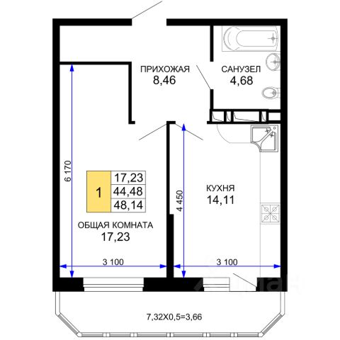 Продаётся 1-комнатная квартира в сданном доме (Литер 5), срок сдачи: IV-кв. 2023, общей площадью 49.34 кв.м., на 14 этаже. Расположение, транспортная доступность