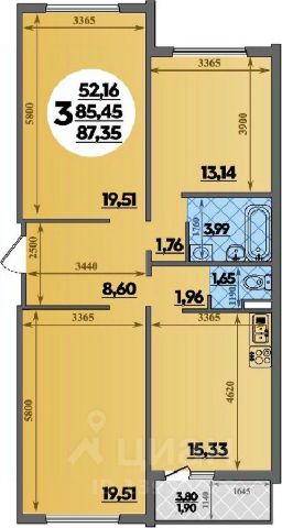 • Санузел под ключ: ванна с декоративным экраном, удобная раковина с пьедесталом, смесители, полотенцесушитель. На полу керамогранит