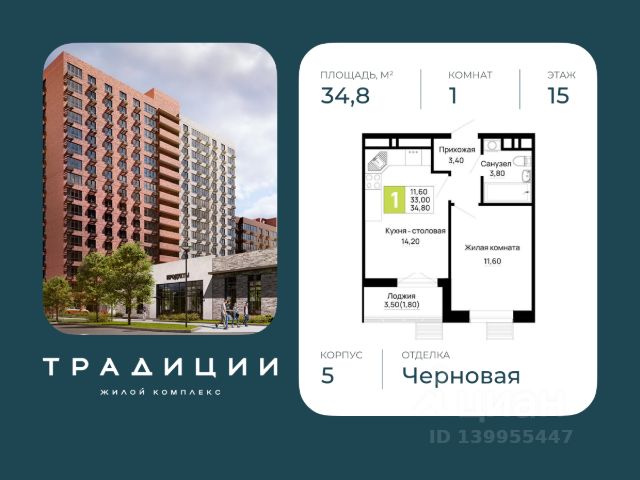 Литер 5, 15 этаж, 152. ЖК "Традиции" - это новый современный комплекс на 7 гa, в 10 минутах от Краснодара. Баланс города и природы. Вся необходимая инфраструктура в пешей доступности Инфраструктура комплекса: Продуманная среда для жизни Всё для детей всех возрастов Современные детские площадки Действующая новая школа на 1100 мест в 70 метрах Свой двор-парк и сквер Падел-теннис и корт во дворе Двор без машин Современная архитектура Безбарьерная среда Воркаут-зона Система видеонаблюдения для безопасности Просторные и лаконичные холлы Многоуровневый паркинг Спортивные площадки для любых видов тренировок Универсальные спортивные площадки для любых видов тренировок Зона для настольных игр Волейбольная площадка и баскетбольная площадка Уютные зоны отдыха для жителей Колясочные и места для хранения велосипедов Трёхуровневое озеленение Позвоните сейчас и забронируйте квартиру со скидкой!