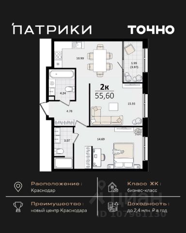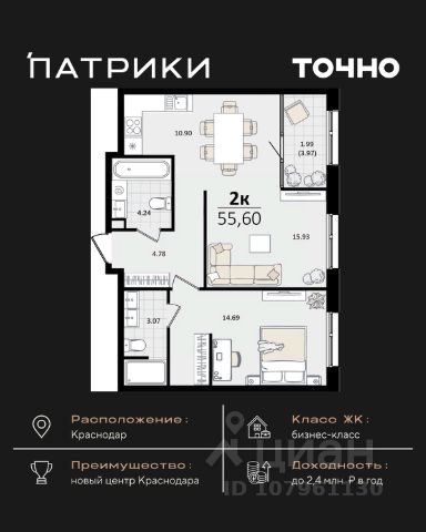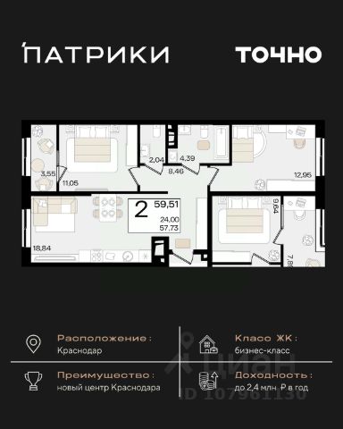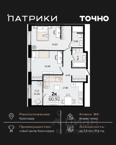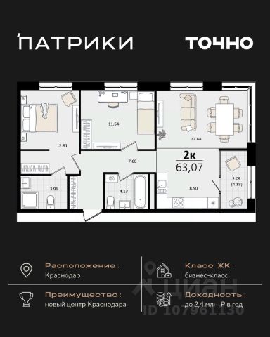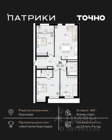 Продаётся 3-комнатная квартира в строящемся доме (Дом 100/8), срок сдачи: II-кв. 2026, общей площадью 92.53 кв.м., на 16 этаже. Новый жилой комплекс "Альфа" от застройщика "Телекомстрой" расположен по адресу город Краснодар, Уральская улица.