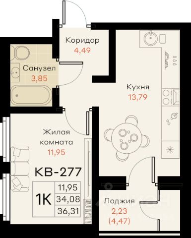В квартире выполнен ремонт в светлых тонах. Хорошая планировка с комнатой правильной прямоугольной формы , где можно расположить для комфортного проживания всю необходимую мебель и технику. Санузел совмещен, установлена новая качественная сантехника. С комнаты есть выход на застекленную лоджию.