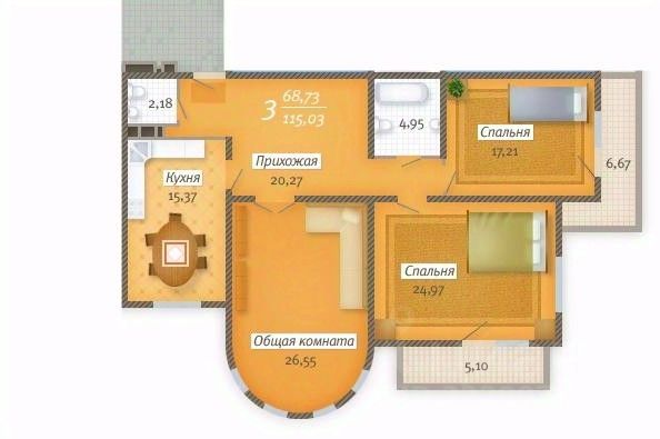 44,5/28,6/6,2 + балкон по 3,4 кв.м. (в общую площадь не входит);