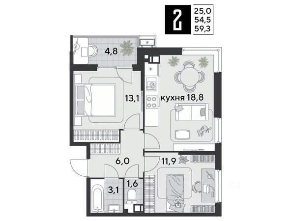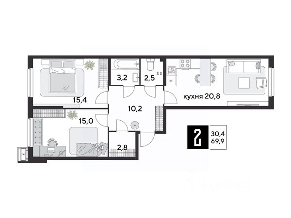 Продается двухкомнатная квартира 46,3 кв.м. + балкон 7кв.м от СОБСТВЕННИКА в тихом и экологически чистом месте с развитой инфраструктурой.