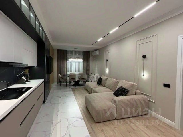 Квартира расположена на 2 этаже, 14-ти этажного дома. Общая площадь 69 кв.м, 33 кв.м — основная жилая площадь (2 комнаты - 13 и 20 кв.м), кухня - 16 кв.м, просторная прихожая - 10 кв.м, раздельный санузел, один застекленный и утепленный балкон. Все комнаты изолированные. В квартире сделан косметический ремонт. В квартире есть проводной интернет, три сплит-системы. Окна выходят на обе стороны дома. Очень просторная прихожая с большими вместительными шкафами. В спальне остается вся мебель: 2-х спальная кровать с тумбочками, шкаф и большой комод. Большая кухня с кухонным гарнитуром и обеденным столом с угловым диваном. Стол и сервант на балконе. В подъезде два лифта (один из них грузовой). На этаже 4 квартиры и закрывающийся тамбур. Квартира чистая и уютная, заходи и живи. Во дворе - детская и спортивные площадки, где летом всегда есть тень из-за большого количества деревьев. В шаговой доступности есть всё самое необходимое: супермаркеты Табрис, Пятерочка, Магнит, рынки, ТЦ, сады, школы, поликлиники. Дом находится в первой линии от трамваев, но трамвайные пути достаточно удалены от дома и шум от них не слышен.