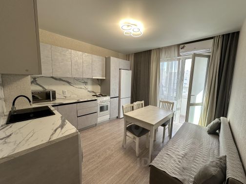 Арт. 135111336 Продается уютная, просторная, видовая квартира с хорошим ремонтом, мебелью и техникой. Большая комната и большая кухня! Позвоните, чтобы узнать подробности! Использованы качественные материалы: - Износостойкий и влагостойкий ламинат 33 класса - Душевая кабина - стекло (не пластик!) - Кухня выполнена на заказ с дорогой фурнитурой (доводчики Blum для каждого ящика) - Акриловая столешница с литой раковиной - практично долговечно и дорого - Немецкая! встроенная техника - Кухонный стол, 2 стула и 2 табуретки - массив дуба - Гардеробная сделана на заказ, рабочая зона в спальне и столик для макияжа также выполнены на заказ. Вся заказная мебель была изготовлена компанией Веста. Рулонные шторы в комнате тоже выполнены на заказ под размер окна. Диван на кухне раскладывается в полноценное односпальное место, квартиру можно использовать как Евро-2. Панорамное остекление балкона Красивый панорамный вид из комнаты и балкона! В квартире тихо, не мешает шум дороги - расположена во втором доме от трассы и с окнами на другую сторону. Закрытая территория, удобный, собственный (не проездной) выезд из ЖК, на Ейское шоссе без пробок. Подземная парковка, видеонаблюдение Быстрый заезд из города после первого разворота с Ейского шоссе. 1 собственник, без обременений, полная сумма в договоре. Звоните, организую показ в удобное для Вас время! Готовы к торгу.