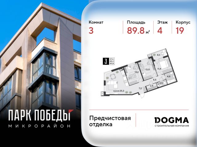 В продаже 3-комнатная квартира от застройщика! ЖК "Парк Победы 2", г. Краснодар, Литер 19 Срок сдачи: 4 кв. 2025, общей площадью 89.8 кв.м., на 4 этаже. Концептуально новый микрорайон "ПАРК ПОБЕДЫ" - это статная архитектура, вдохновленная наследием страны. Уникальное культурное пространство в стиле сталинского ампира, который отличает монументальность, классические пропорции и четкость линий. •Безбарьерная среда •Сквозные подъезды •Авторские лобби •Видовые квартиры с панорамным остеклением •Квартиры с мастер-спальнями и отдельными гардеробными •Потолки 3 метра •Улучшенная отделка от застройщика •Подземный паркинг и кладовые •Дворы без машин с видеонаблюдением •Круглосуточный пост охраны •Школа для 1 550 учеников •4 детских сада •Уличные тренажёры, зоны для пинг-понга и йоги •Крытый боксёрский ринг •Собственный пешеходный бульвар •Прогулочные аллеи с фонтаном •Коммерческие помещения на первых этажах Приобрести квартиру можно одним из способов: -субсидированная семейная ипотека 4,5 % на весь срок -рассрочка до конца строительства -оплата наличными -дистанционная покупка Позвоните сейчас и забронируйте квартиру со скидкой!