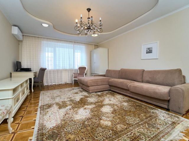 Представляю к продаже 4-х комнатную квартиру Пентхауз на 7-м этаже 7-ми этажного кирпичного дома с пассажирским лифтом, общая площадь 122 кв.м, жилая площадь 80 кв.м. Квартира двухуровневая, состоит из большого холла-гостиной в 29 кв.м высотой 4.5 м; 3-х изолированных спален 15-17-18 кв.м и с высотой 3-3-2.3 м с большими 2-х спальными кроватями евро и шкафами-купе с зеркалами. Квартира была куплена непосредственно у застройщика ООО