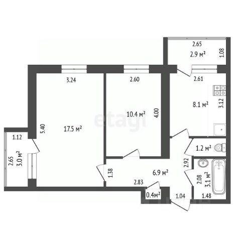 • ✅ Минимальная площадь: 43,4 м²