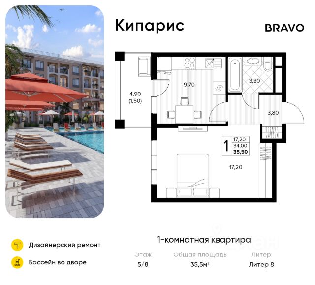 Продаётся 1-комн. квартира от застройщика c отделкой в ЖК "Кипарис" на 5 этаже. Общая площадь:34.6 кв.м., площадь просторной кухни-столовой:9.3. B квартире один балкон. Высота потолков 2.81 м. Дом монолитный, многоподъездный, переменной этажности, от 6 до 8 этажей. B подъезде два лифта - пассажирский и грузовой. Ваш личный курорт в Сукко с собственными школой, детским садом и бассейном в каждом дворе! Выйдя во двор ваш ребенок уже в детском саду или в школе. До центра Анапы - 30 минут на автомобиле. Идеальное место для жизни и отдыха! Кипарис - это комплекс в стиле средиземноморского Возрождения, где есть бассейны, детские площадки и места для отдыха взрослых, зеленые аллеи. В Кипарисе предусмотрены коммерческие помещения и кабинет врача общей практики. Комплекс соседствует с лесом, а в 8 минутах ходьбы находится озеро Сукко с кипарисами. Кипарис безопасен и защищен благодаря закрытости и видеонаблюдению. Комплекс продуман, как территория без машин - паркинг на 3300 машино-мест вынесен за пределы жилой застройки. С окон и балконов открываются роскошные виды на горы и лес. В Сукко есть вся необходимая инфраструктура и множество развлечений - дельфинарий, дайвинг, серфинг, конные прогулки, спорткомплексы, винодельни, дегустационные локации, этнокомплекс, замок развлечений. От комплекса до пляжей Сукко - полчаса прогулочным шагом. ЖК Кипарис - для тех, кто позитивен, жизнелюбив, оптимистичен и доброжелателен. Способы покупки - за наличный расчет, ипотека, рассрочка, военная ипотека, материнский капитал. Действует несколько акций: - трейд-ин с привлечением автомобиля; - акция "Приведи соседа" - 80 тысяч рублей вознаграждения за привлеченного покупателя; - "Ипотека без наценки" - семейная ипотека под 3,5% годовых; - скидка 10% на однокомнатные и однокомнатные-евро квартиры. Срок ввода 2 кв. 2026 г. Квартиры с готовой отделкой.