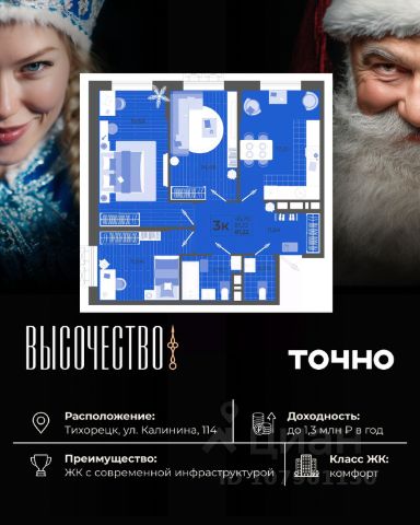 Продаётся 2-комнатная квартира в строящемся доме (дом 60), срок сдачи: IV-кв. 2025, общей площадью 58.55 кв.м., на 5 этаже. Продается квартира напрямую от застройщика. Новый стильный дом, удобная планировка квартиры: большая светлая комната, вместительная кухня и просторная прихожая. Все квартиры в доме сдаются с готовым ремонтом, поэтому переехать можно будет в день получения ключей! РАСПОЛОЖЕНИЕ Квартира находится в перспективном, развивающемся районе Тихорецка - теплого южного города. Вокруг очень много зелени и чистый воздух. В шаговой доступности от ЖК Тихорецк - 3 школы, 2 детских сада, магазины Магнит и Пятерочка, пункты выдачи интернет-заказов. Недалеко от дома - парк и зелёная роща. Совсем рядом расположился Ледовый Дворец - гордость Тихорецка. Все, что нужно для комфортного проживания, находится в 5 минутах от дома! До центра города можно добраться на машине или общественном транспорте за 10 минут. Кстати, остановки общественного транспорта тоже находятся в шаговой доступности. ОСОБЕННОСТИ Литер 2 жилого комплекса Тихорецк - это дом нового уровня стиля и комфорта. Яркий, стильный фасад, дизайнерские входные группы с панорамными дверями, улучшенные детские и спортивные площадки, ландшафтное озеленение с автополивом. Дом выгодно отличают остекленные балконы - это значит, что вы существенно сэкономите деньги и время. Вы непременно оцените удобные входные группы на уровне земли - вам не придётся подниматься с коляской или с тяжелыми пакетами по ступенькам - всего пару шагов, и вы в подъезде. ОТДЕЛКА В квартире вас ждет улучшенный ремонт под ключ: -Надежная металлическая входная дверь -Улучшенные стильные межкомнатные двери -Матовые натяжные потолки -Плотные виниловые обои пастельных тонов -Санузел под ключ: ванна с декоративным экраном, удобная раковина, смесители, полотенцесушитель. На полу керамогранит. -Установлены все радиаторы, выключатели и счетчики -Индивидуальный газовый котел отопления. Горячая вода у вас будет всегда, без перебоев. Вы сможете начать обогрев комнат в любой момент, не дожидаясь отопительного сезона. А еще, газовый котел позволяет существенно экономить. ГИБКИЕ ВАРИАНТЫ ПРИОБРЕТЕНИЯ -ИПОТЕКА СЕМЕЙНАЯ -IT-ИПОТЕКА -РАССРОЧКА -НАЛИЧНЫЙ РАСЧЕТ (предоставляется скидка) -МАТЕРИНСКИЙ КАПИТАЛ -ВСЕ ВИДЫ СЕРТИФИКАТОВ Звоните или приезжайте, и мы проведем для вас экскурсию, покажем квартиры и район и поможем подобрать комфортные условия покупки этой квартиры.