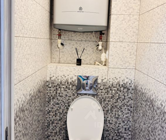 -Санузел под ключ: ванна с декоративным экраном, удобная раковина, смесители, полотенцесушитель. На полу керамогранит.