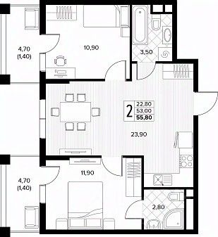 В кухне-гостиной установлен инверторный кондиционер, кухонный гарнитур со встроенной техникой, микроволновая печь, кофеварка Nescafe, кулер для питьевой воды. Вся необходимая посуда также остается в подарок новым владельцам. Диван-кровать фирмы Аскона с ортопедическим матрасом размером 140 на 200, жесткая раскладушка для размещения 3-го отдыхающего; стол обеденный, 4 стула, Smart телевизор, гладильная доска, утюг.