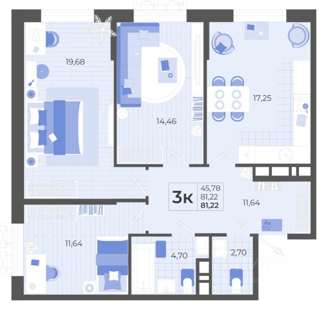 Продаётся 3-комнатная квартира в сданном доме (Литер 2), срок сдачи: IV-кв. 2025, общей площадью 81.7 кв.м., на 6 этаже. Новый жилой комплекс "Высочество" от застройщика "ГК ТОЧНО" расположен по адресу город Тихорецк, улица Калинина.