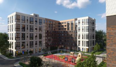 Во дворе предусмотрены пространства, на которых можно найти занятия для всех членов семьи. Безопасные детские площадки оборудованы прорезиненным покрытием, на них есть горки и качели. Универсальные спортивные зоны закрыты решеткой, поэтому баскетбольный или футбольный мяч не покинет пределы площадки.