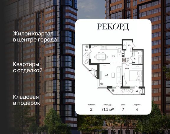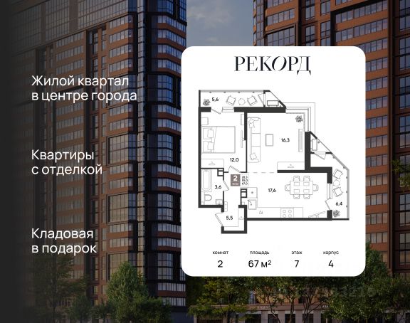 В продаже 2-к квартира от застройщика! ЖК "Рекорд" 2 очередь, г. Краснодар, Литер 4. Срок сдачи: 2 кв. 2026, общей площадью 67 кв.м., на 7 этаже. Жилой Комплекс "РЕКОРД" - место вашего баланса. Город снаружи природа внутри. Квартал с максимумом возможностей для хорошо сбалансированной жизни. Расположен в оживленном благоустроенном районе города. Сочетает в себе и жилую застройку, и торгово-деловые центры. Здесь все под рукой, здесь центр городских событий. • Уникальная локация центр города • Современная архитектура • Панорамные виды • Элегантные входные группы • Архитектурная подсветка фасадов • Школа во дворе (1550 мест) • Детский сад во дворе (110 мест) • Двор без машин • Подземный паркинг и гостевые парковки • Круглосуточный пост охраны • Медицинский центр • Фитнес центр • Система "умный дом" • Баскетбольная и универсальная спортивные площадки • Современные развивающие детские игровые площадки • Ресторанный дворик с аллеей и фонтаном • Храм с уникальной архитектурой • Премиальные лифты с подсветкой и музыкой • Звукоизоляционные окна • Зарядные устройства для электромобилей • Ароматизация мест общего пользования • Элегантные входные группы • Дизайнерские лобби • Консьерж сервис • Сквозные подъезды • Кладовки • Кондиционирование холлов • Благоустройство территории с Арт объектом • Воркаут-зоны • Зона коворкинга Приобрести квартиру можно одним из способов: -субсидированная семейная ипотека -оплата наличными -дистанционная покупка Позвоните сейчас и забронируйте квартиру со скидкой!