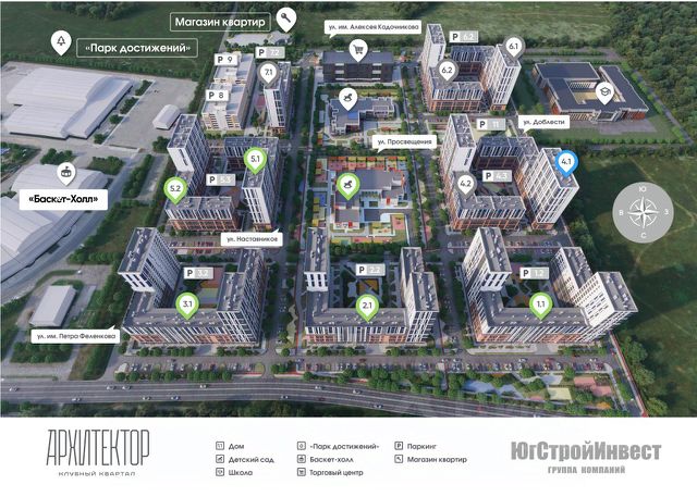 Расположение, транспортная доступность Жилой квартал "Достояние" расположен в северной части Краснодара недалеко от Западного обхода. Удобное расположение улицы Дзержинского и Ростовского шоссе позволят автовладельцам добраться до центра города примерно за 15 минут. Расстояние до ключевых локаций в центре составляет около 8 км. В нескольких метрах от квартала — улица Конгрессная с остановками общественного транспорта и маршрутных такси. Инфраструктура Жилой квартал "Достояние" воплощает строительную концепцию "город в городе". Те, кто решит купить здесь квартиру, смогут воспользоваться внутренней инфраструктурой. Здесь располагаются важные социальные и коммерческие объекты: детские сады, продуктовые магазины, аптеки, кофейни и многое другое. В радиусе нескольких километров от "Достояния" находятся организации, которые могут пригодиться будущим владельцам квартир. Образование. Краснодарский университет МВД России, Краснодарское высшее военное училище им. генерала армии С. М. Штеменко, общеобразовательные школы 95 и 98, детские сады "АдаптациЯ", "Умка", "Золотой кораблик", "Русалочка", HappyBaby. Здоровье. Городская поликлиника 13, медицинский центр Helix, стоматологии "Для семьи", "Зубная фея", "Авторская стоматология", кабинет логопеда-дефектолога, оздоровительный центр AVAX fit & spa. Спорт. Спортивный комплекс "Баскет-Холл", "Академия бокса", фитнес-студия Mini Fit, "Центральный спортивный клуб армии", фитнес-клуб N-fitness, гимнастический клуб "Небеса". Магазины. Супермаркеты "Магнит", "Перекресток", "Пятерочка", Granat market, "Красное & Белое", продуктовые магазины. Общепит. Рестораны Pro Sushi и KFC, пиццерия Bruno pizza, блинная "Вкуснолюбов", бар "Пивляндия", кафе "Прожарка", закусочная Chilli. Архитектура Жилой квартал "Достояние" — это дома высотой до 24 этажей, построенные по монолитно-кирпичной технологии. Внешний облик зданий выполнен в современном архитектурном стиле: фасады выдержаны в теплой природной цветовой гамме. Жители квартала смогут оставить автомобили в подземных паркингах и отдельных многоуровневых парковках. Там они будут изолированы от посторонних, защищены от непогоды и не помешают тем, кто решит прогуляться во дворе или на прилегающей территории. Во дворе предусмотрены пространства, на которых можно найти занятия для всех членов семьи. Безопасные детские площадки оборудованы прорезиненным покрытием, на них есть горки и качели. Универсальные спортивные зоны закрыты решеткой, поэтому баскетбольный или футбольный мяч не покинет пределы площадки. Любители спокойного отдыха могут почитать книгу или послушать музыку на свежем воздухе, сидя на эргономичных скамьях или качелях с подсветкой. Ландшафтные дизайнеры предусмотрели аккуратное озеленение и прогулочные маршруты по всему кварталу. В жилом квартале "Достояние" можно купить квартиры, которые подойдут студентам, парам или большим семьям. Площадь жилых пространств варьируется от компактных студий до 3-комнатных квартир. В каждой из них предусмотрена чистовая отделка, а